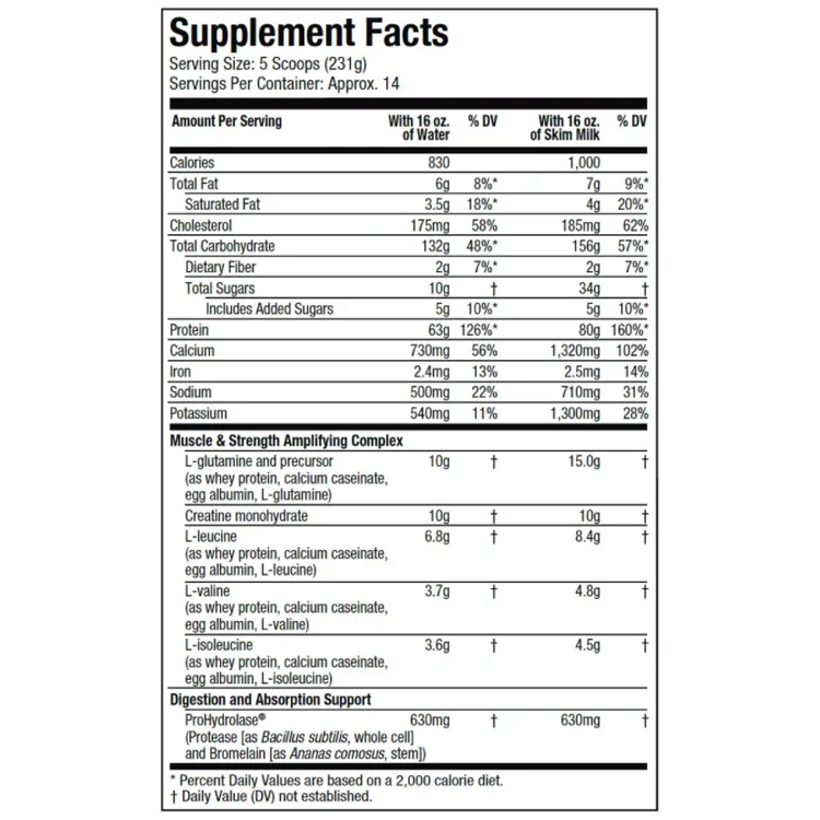 La formule contient une enzyme Prohydrolase® pour une absorption optimale des ingrédients du gainer.